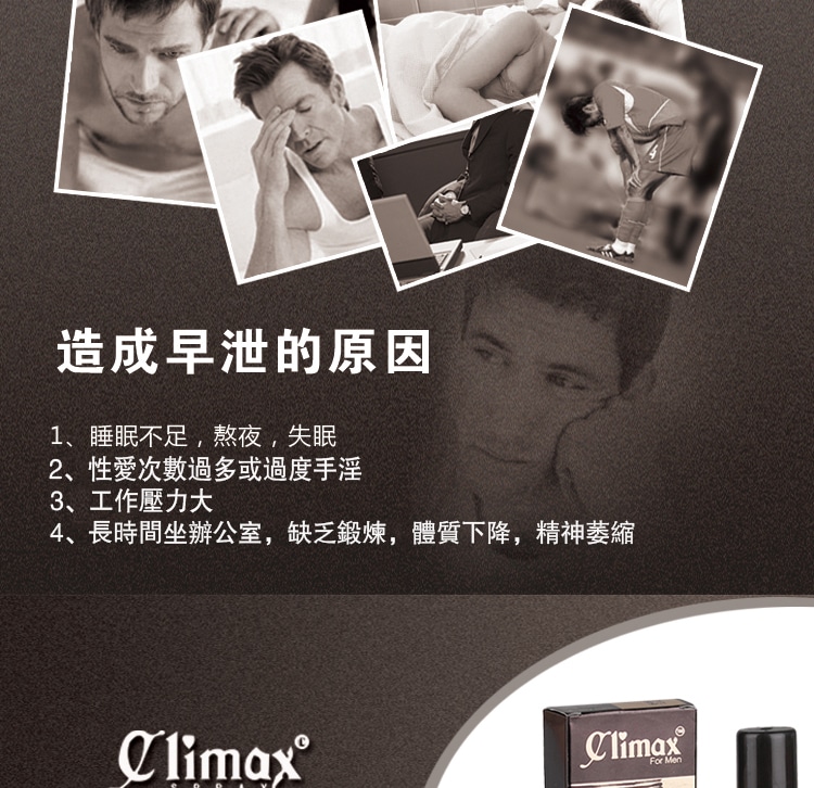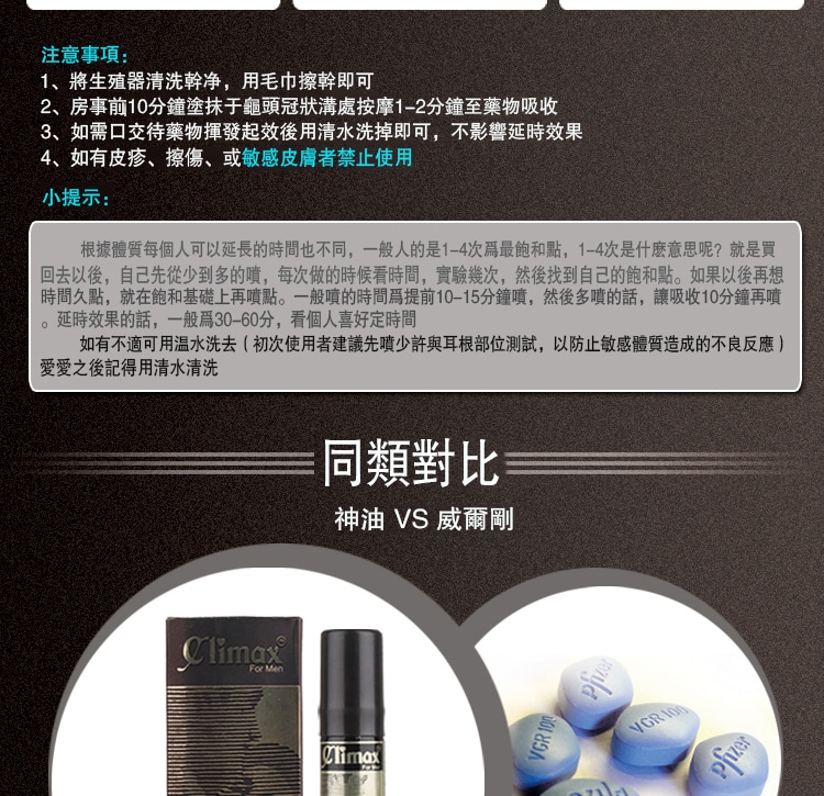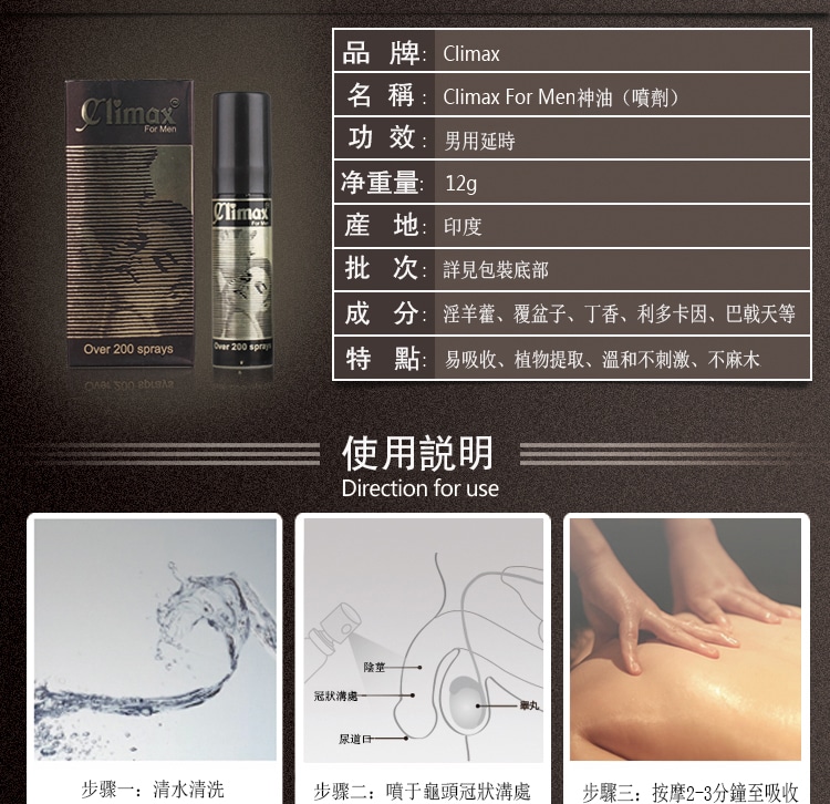 1.climax持久噴劑專為東方男性研制延時效果顯著,持久同時更加威猛!充分滿足幸伴侶!
