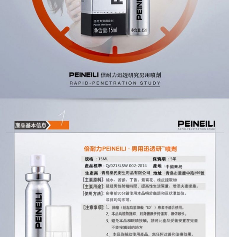 倍耐力持久液屬於成人用品類,可有效的緩解男性出現的不硬、時間短、不舉等現象。倍耐力延時噴劑主要原料由蛇床子提取物、丁香提取物、紫霄花提取物、桂皮提取物等原料組成,采用現代生物科技和純天然中草藥配方精制而成,可有效的防止早瀉,改善體質功效。倍耐力延時噴劑方中的桂皮提取物含桂皮醛、丁香酚等,並含鞣質及粘液質。對人體免疫功能有明顯的增強作用,其作用機理是,其可增強人體T淋巴細胞和B淋巴細胞的增殖與分化,以及殺傷細胞的殺傷功能以及單核吞噬細胞的吞噬功能。只要在房事前15分鐘使用本品噴於龜頭和冠狀鉤部位,塗抹均勻,其有效延時時間是有60分鐘的。並且,倍耐力��時噴劑具有固本生精、抑制早泄、溫經通酪、激情動欲、興奮神經、促進勃起、預防性病傳播等功能。